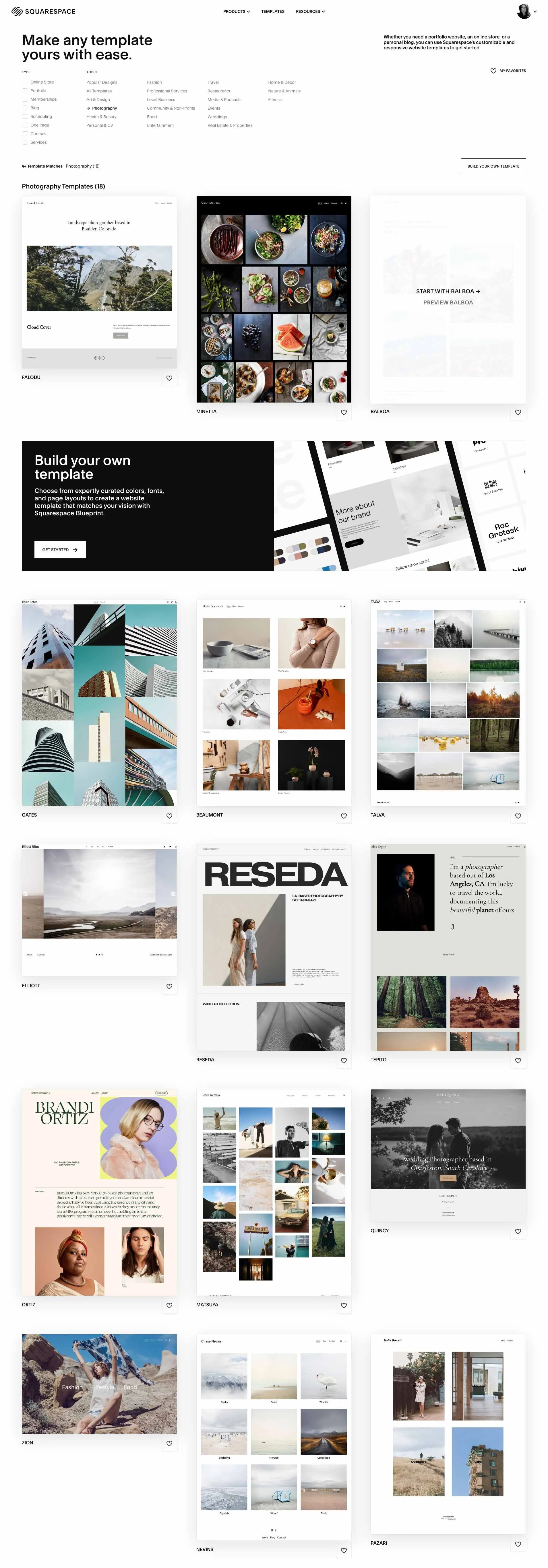 One of Squarespace's standout features is its collection of beautifully designed templates. These templates are specifically crafted to showcase visual content, making them an excellent fit for photographers. You can choose from a variety of layouts, styles, and colour schemes to match your photography style. The templates are mobile-responsive, ensuring your website looks great on all devices. If you’d like to build your own template, Squarespace makes it easy to do that too. Check out Blueprint.